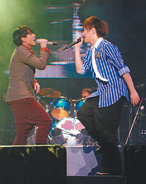 五月天昨晚演唱從未發表過的「金色大街」,因為在附中相識組團,也特地找來50名附中吉他社成員合唱「憨人」,鼓勵歌迷把握年輕時光,勇敢追逐夢想,「也許下一個五月天就在這裡」。